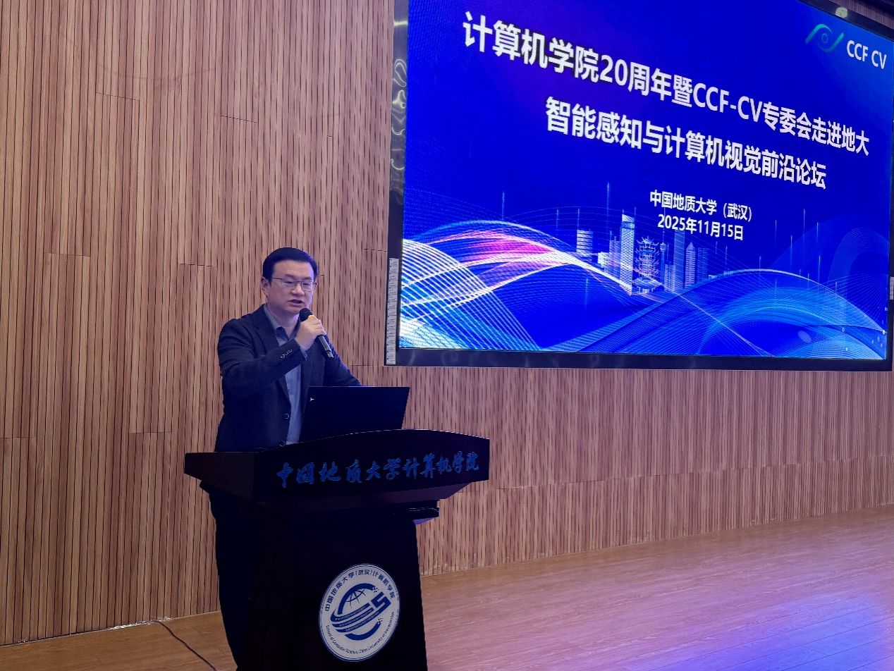 2025年11月15日,欧美色情 迎来建院20周年,由中国计算机学会计算机视觉专委会(CCF-CV)主办、欧美色情 承办的第148期“CCF-CV走进高校”系列报告会——“智能感知与计算机视觉前沿论坛”在中国地质大学(武汉)未来城校区欧美色情 126报告厅成功举办。本次活动作为欧美色情 建院20周年暨计算机学科建设40周年系列学术活动的首场报告会,吸引了来自武汉大学、华中农业大学、华中师范大学、地大等多所兄弟高校的200多名师生踊跃参加,共同见证学院在人工智能与计算机视觉领域的发展成果与学术影响力,标志着院庆系列学术交流活动的正式启幕。欧美色情 院庆系列学术活动由院长张洪艳教授担任总执行主席,智能系刘袁缘教授担任本次报告会的执行主席,蒋良孝教授、黄绍广教授、孙琨副教授等智能系教师担任此次报告会执行委员。