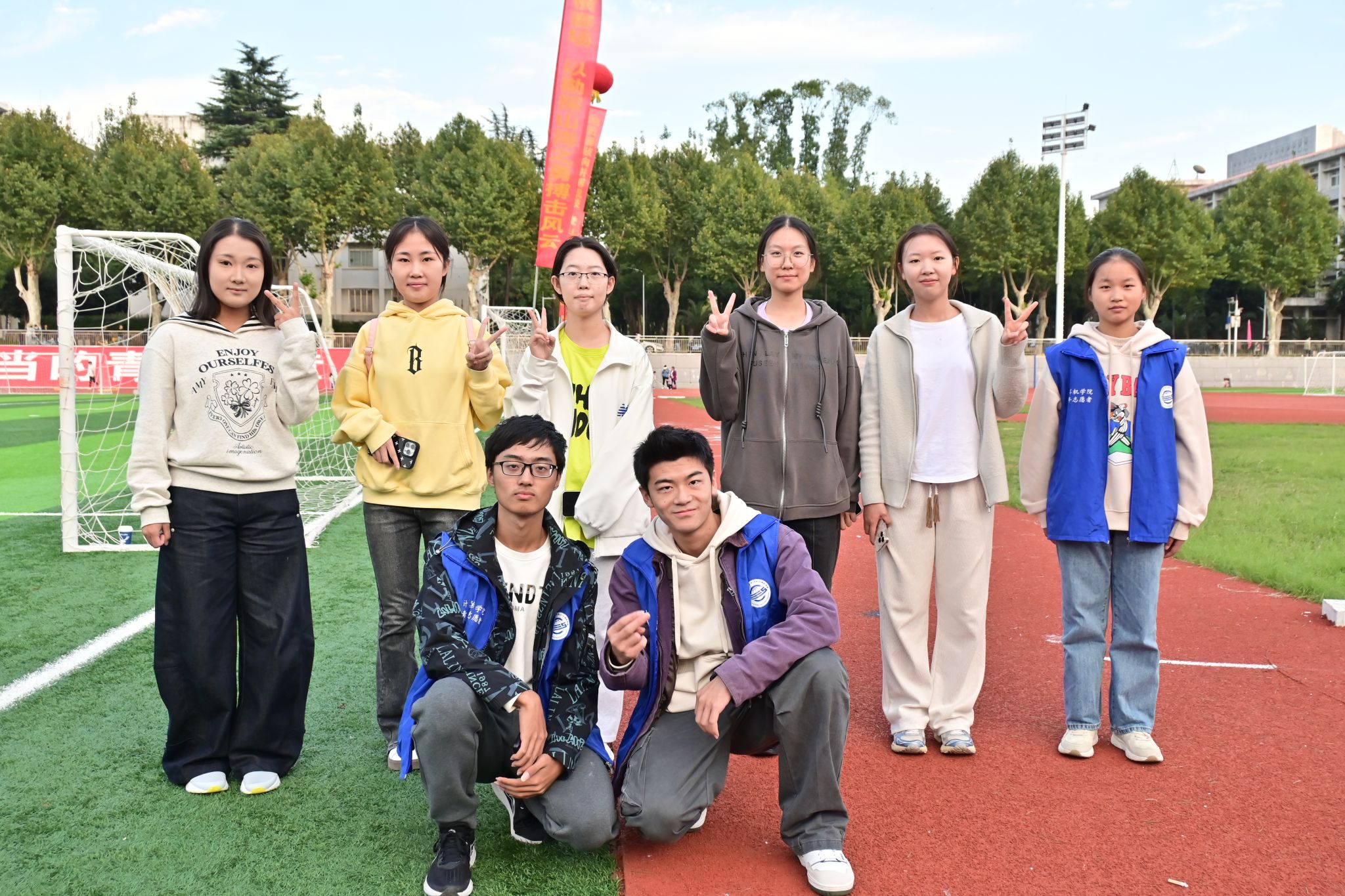 一场运动会的圆满成功,背后是无数人无声的坚守与付出。志愿者们奔波忙碌,用耐心解答与热情指引,保障赛事每个环节顺畅运行;全媒体中心团队穿梭于赛场内外,以镜头捕捉汗水与笑容,将拼搏的身影与感动的瞬间一一留存;文体部的同学们倾注智慧与心血,精心设计每一项流程与活动,为运动会注入活力与温度。正是这份台前幕后的同心协力,让选手的每一次拼搏都有回响,让全场的每一份期待都有回应,最终汇聚成这场体育盛事的华彩乐章。