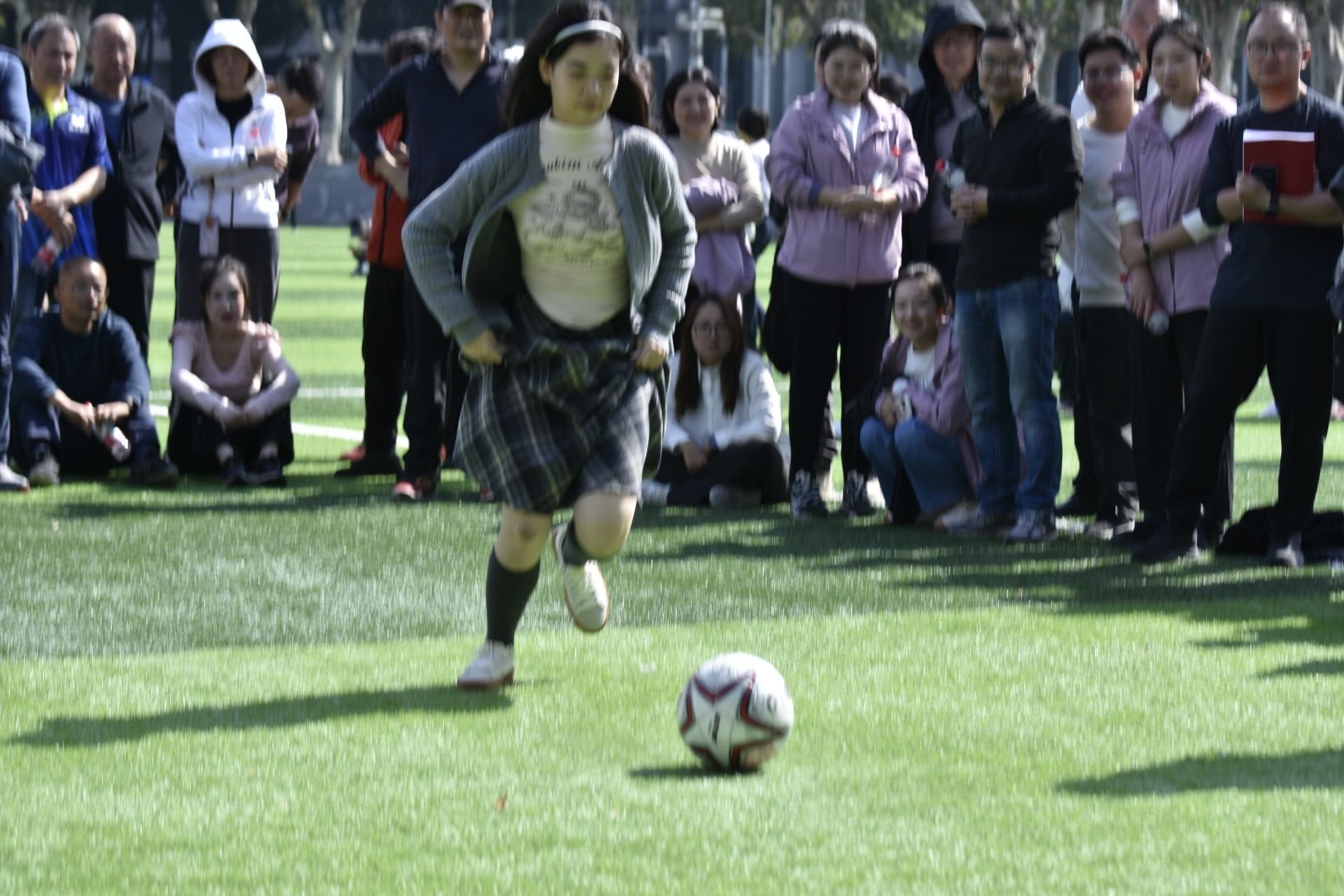 趣味项目带来了阵阵欢笑,在排球掷准赛场,李姝璇、向盼盼、苏圣涵、彭磊、张傲阳、夏步旺组成的队伍全神贯注,每一次投掷都划出精准弧线,他们凭借强劲的实力夺得亚军。张佳乐、田礼阳、张璐、王奕、秦子瞻、魏作敏、魏松洋、孙艺、郑思豪组成的队伍在快速奔跑与精准交接中,展现了团队的凝聚力与活力,最终获得50米往返接力赛第七名。姜宇、陈泽西套上编织袋,化身为跳跃的“袋鼠”精灵,在轻松愉快的氛围中展现了别样的运动风采。足球射门项目同样精彩,杨谨源、梅桂萱、戴舜霆、周沛琦、曲浩文、孟阿荣组成的队伍目光专注,每一次射门都凝聚着力量与技巧,展现了团队的即时协作与拼搏精神。集体跳绳项目中,王紫研、张瑀萱、魏松洋、孙艺、黄承逸、孙端岳、唐乐轩组成的队伍配合默契,长绳飞舞间,队员们如音符般跳跃,用整齐的节奏谱写了一曲活力四射的运动乐章。